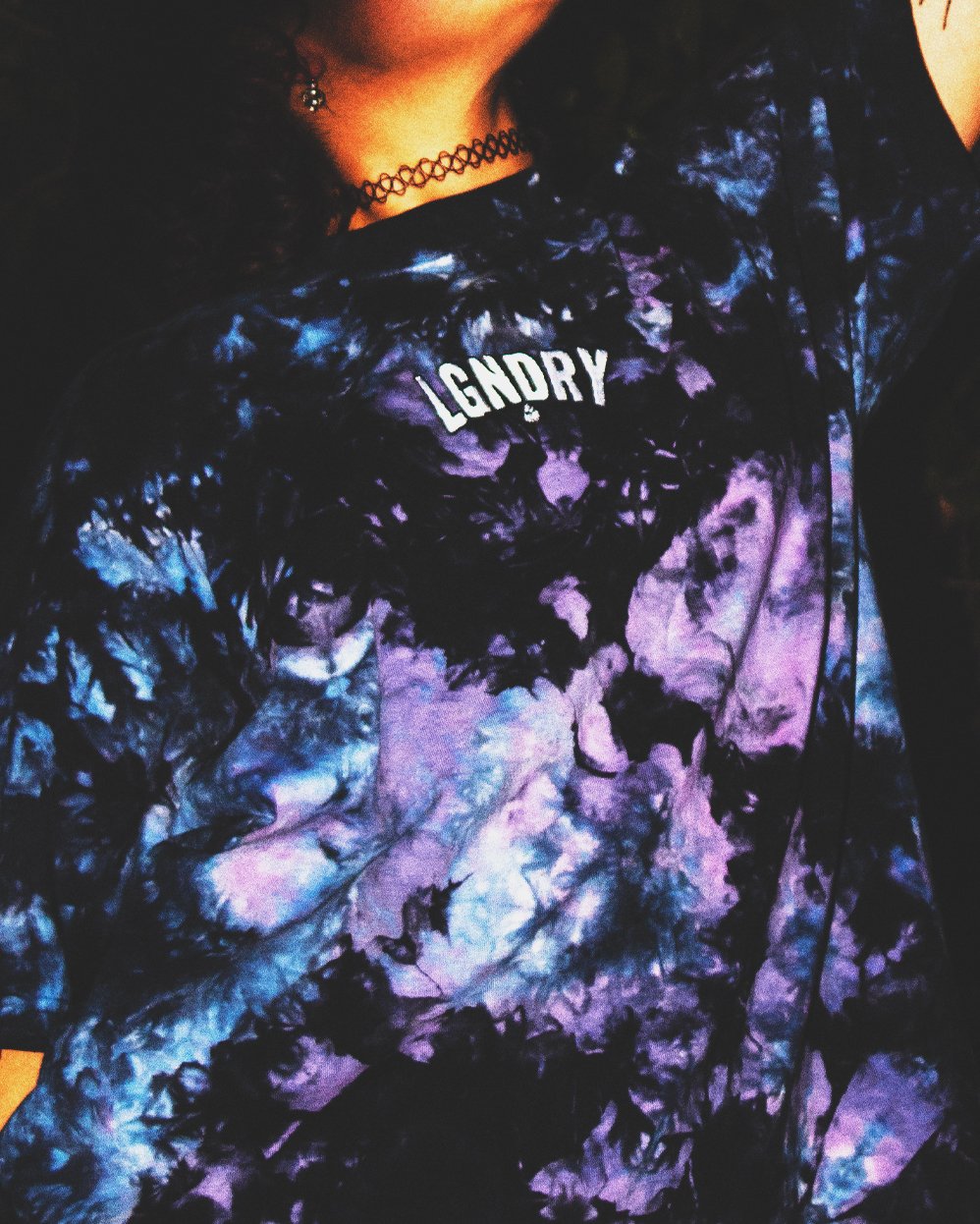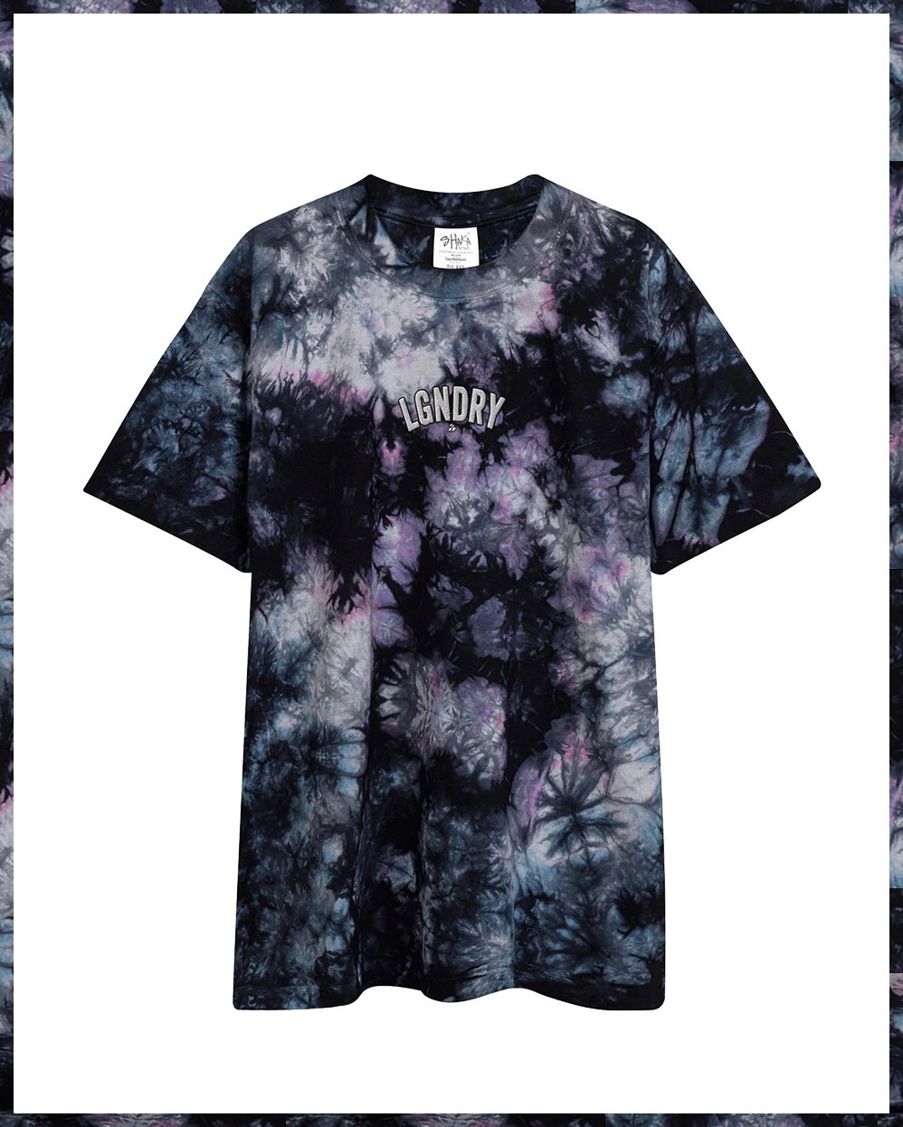 A starry-painted tie-dye tee crafted by the makers of SHAKAWEAR, with our emblem embroidered on the middle chest in black and white